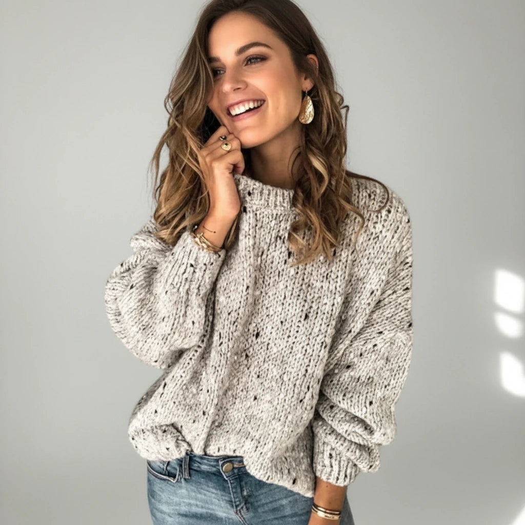 Wrap yourself in the relaxed charm of this beautifully textured cozy knit sweater, crafted to bring comfort and sophistication into your everyday style. Its softly structured neckline and gentle drape create a naturally flattering silhouette that pairs effortlessly with denim, trousers, or layered outerwear.