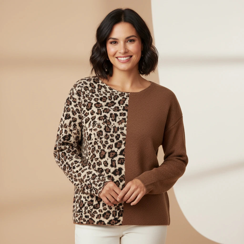 Elevate your everyday style with a statement sweater that blends warmth, softness, and striking modern edge. The half-leopard, half-solid design adds a bold twist while keeping the silhouette relaxed and comfortable for all-day wear. Perfect for casual outings, brunch plans, or effortless layering, it pairs beautifully with denim, boots, or a sleek jacket for a chic, confident, standout look.